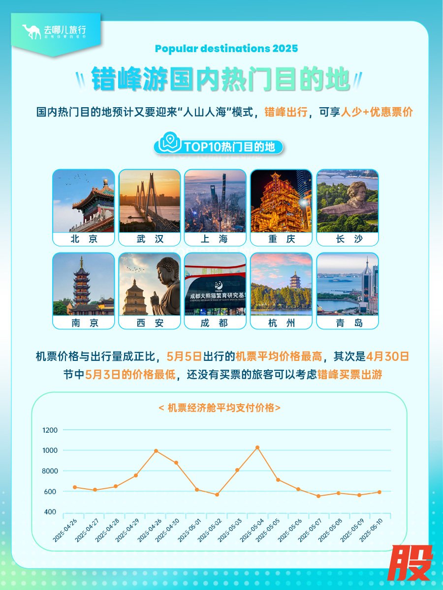 去哪儿大数据:五一热门目的地,成都杭州上榜前十